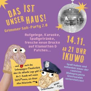 Sad but true: der Kampf um die Grimmer als das alternative, solidarische und feministische Wohnprojekt, was es ist, geht nun schon über ein Jahr! Doch wir geben nicht auf, für die Strukturen zu kämpfen, die wir jahrelang aufgebaut haben und vor allem: wir lassen uns den Spaß nicht nehmen!